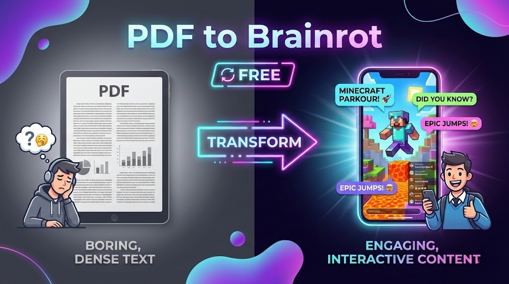 Convert any PDF to brainrot video free. Step-by-step guide comparing 8 free tools. No signup required. Best practices for studying included.