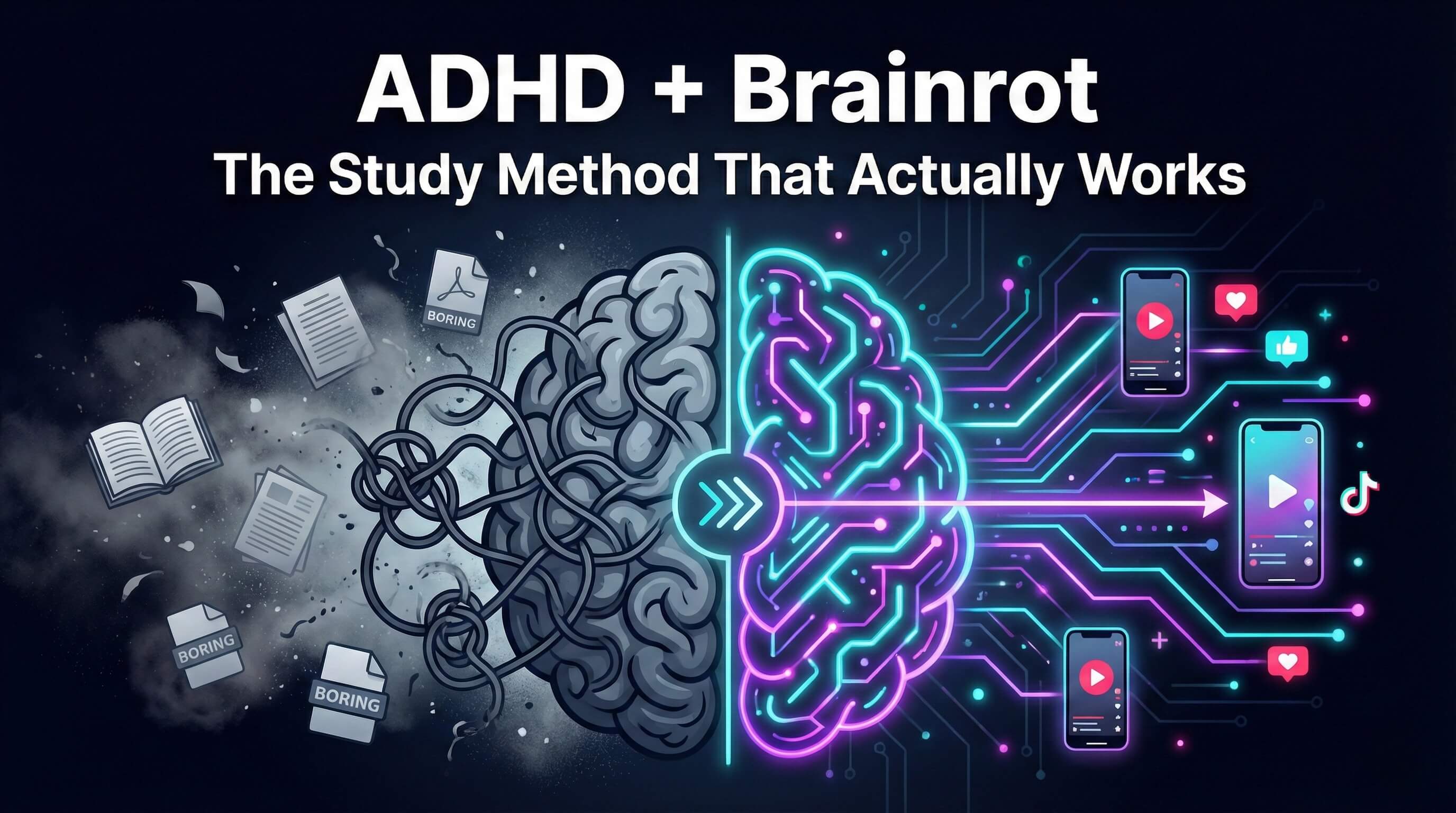 Why brainrot videos help ADHD students focus when textbooks fail. Science-backed guide to dual stimulation, optimal settings, and study tips for ADHD brains.